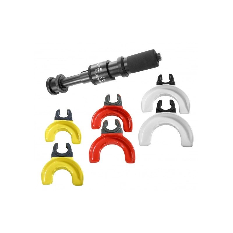 - • Entretoise mobile permettant deux positions de travail pour les coupelles.