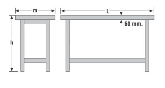 - L x m x h (mm) = 1750 x 500 x 830 mm