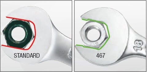 - – Jeu de 10 clés mixtes standard à cliquet : 467.8 – 10 – 11 – 12 – 13 – 14 – 16 – 17 – 18 – 19 mm.