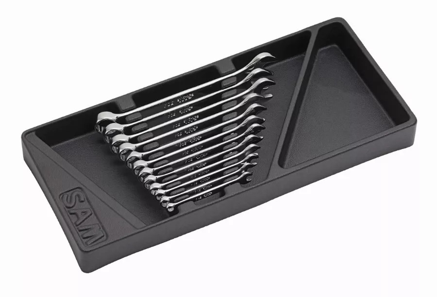 Alliance de 2 têtes de même ouverture, permettant avec la tête à fourche une approche rapide de serrage et un blocage surpuissant avec la tête polygonale dont le coudage à 15° assure une manoeuvre aisée en surface plane.