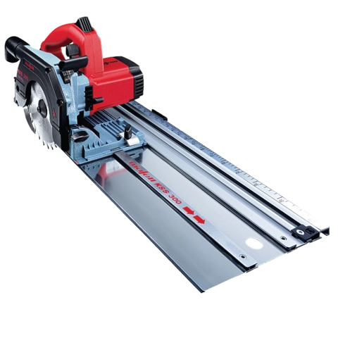 - Il est facile de séparer la scie circulaire portative du guide de mise à longueur en appuyant simplement